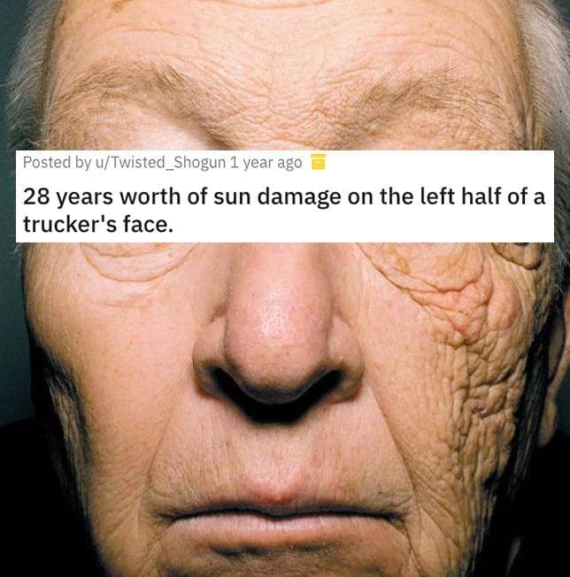 What Sun Damage Looks Like To The Side Of Your Face When You Ve Been Truck Driving For 28 Years 9gag